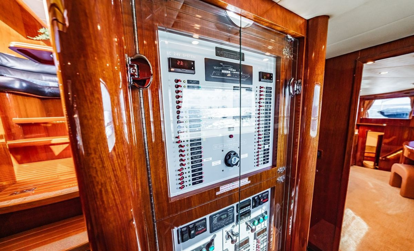 VIP King Cabin, lower deck (Forward Below). Large En‑suite VIP head with marble vanity and shower.