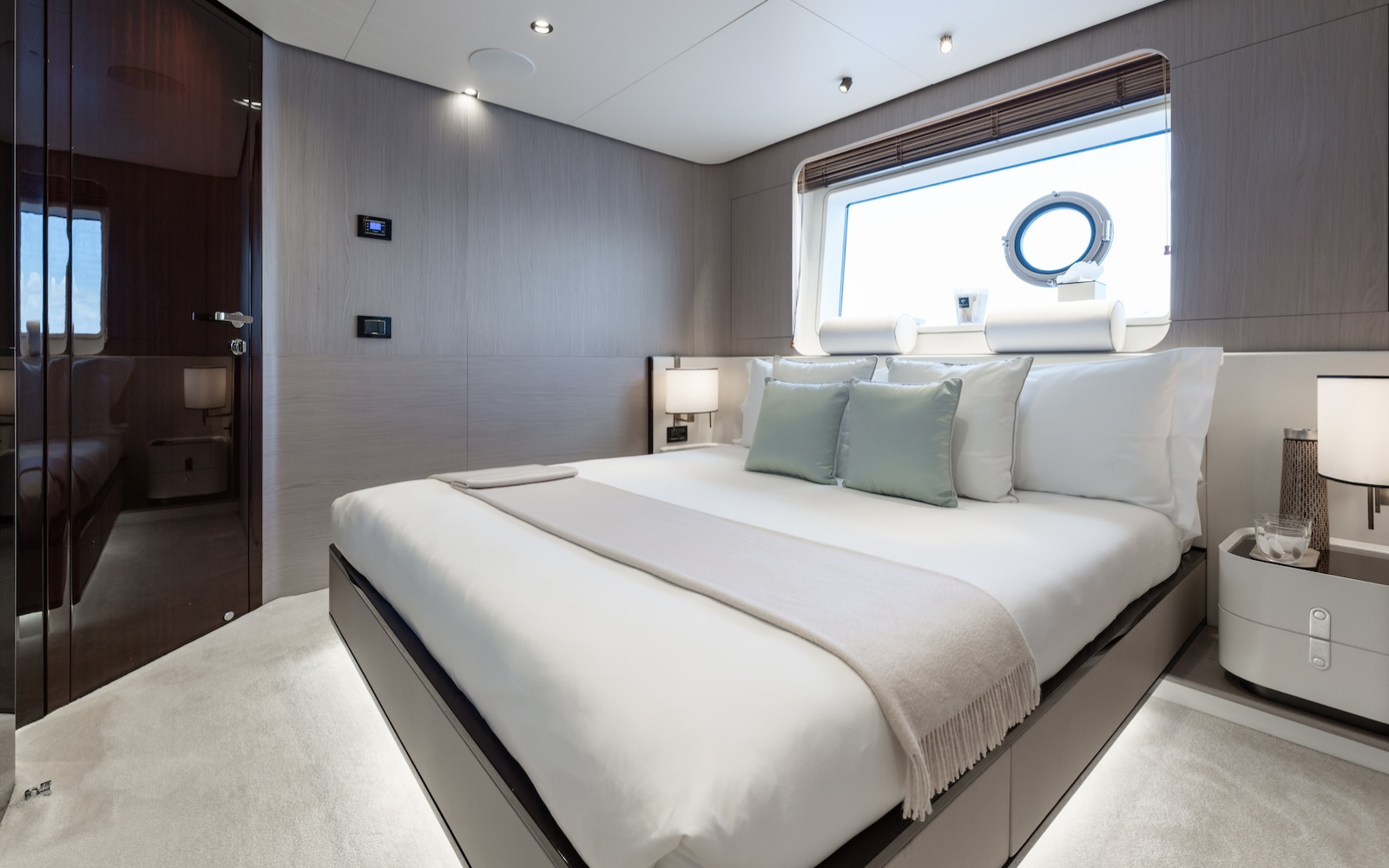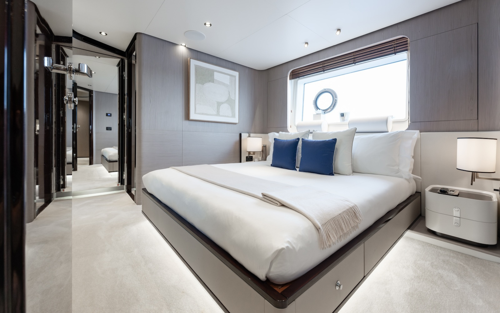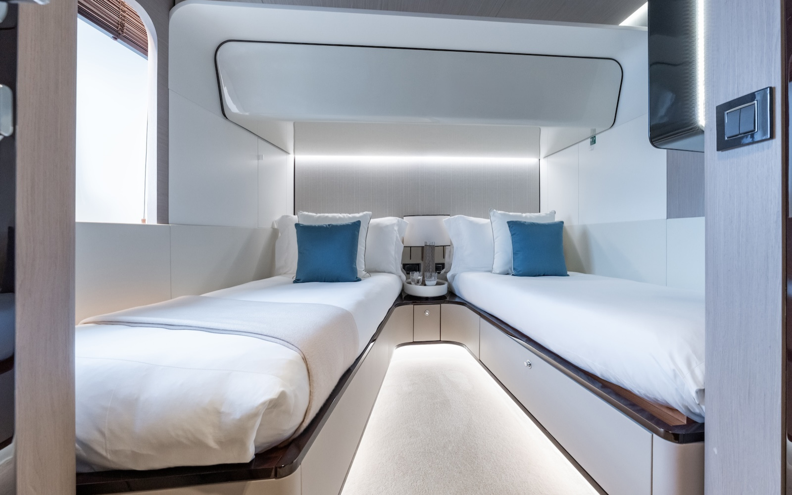 1 x guest cabin (starboard forward) has a double bed (150 x 200cm), large window and is en-suite with a shower.