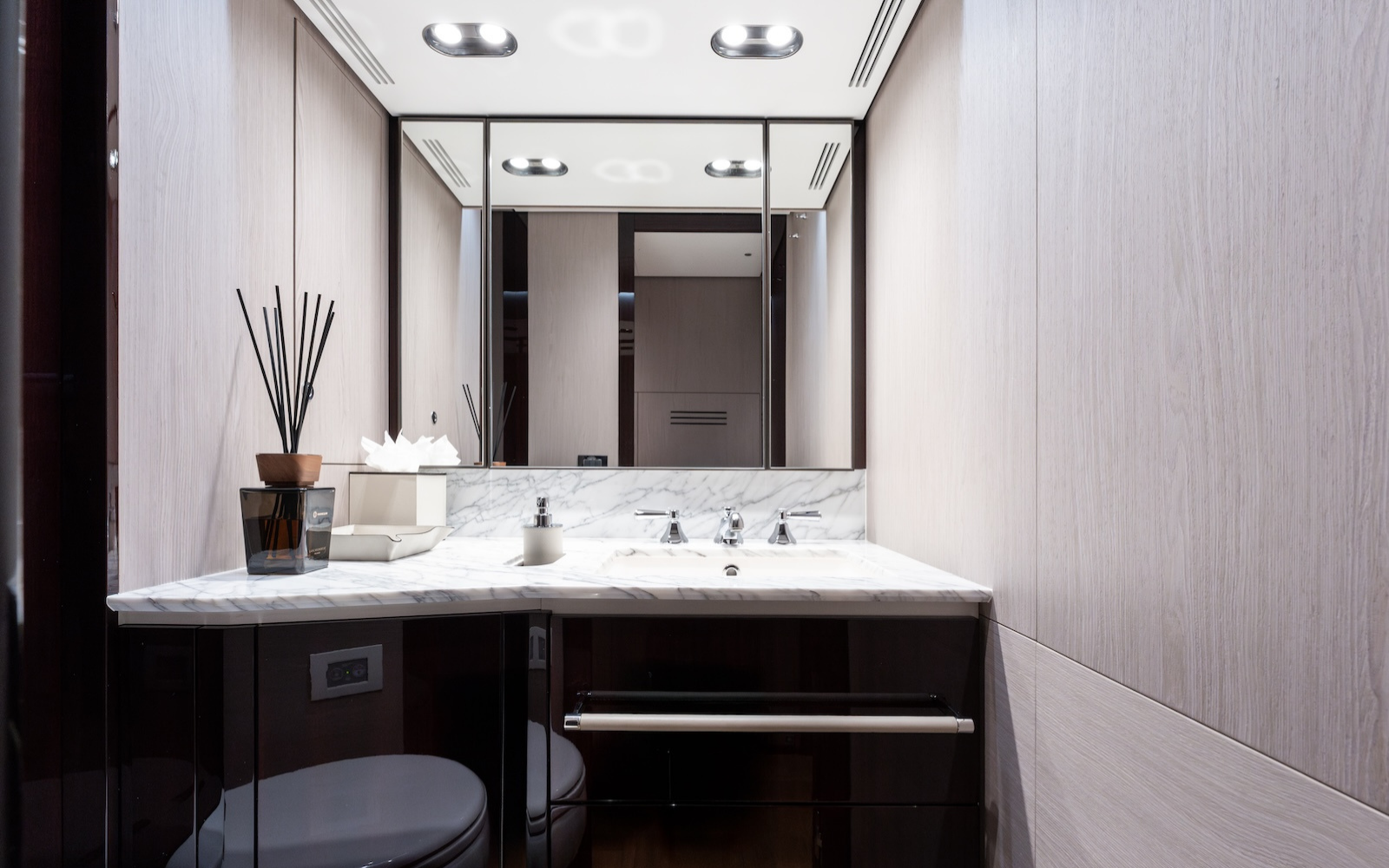 1 x guest cabin (starboard forward) has a double bed (150 x 200cm), large window and is en-suite with a shower.