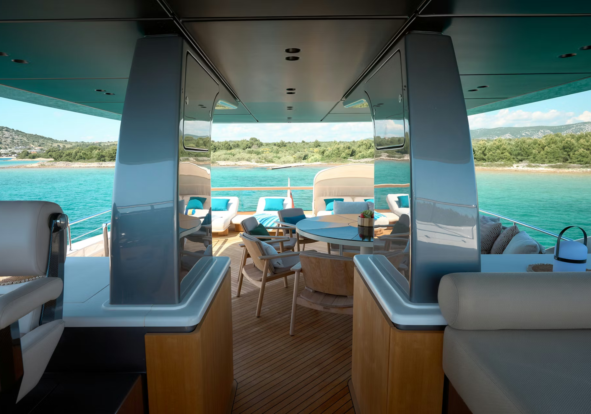 FLYBRIDGE (can be reached either by either external staircase from the aft or via the wheelhouse).