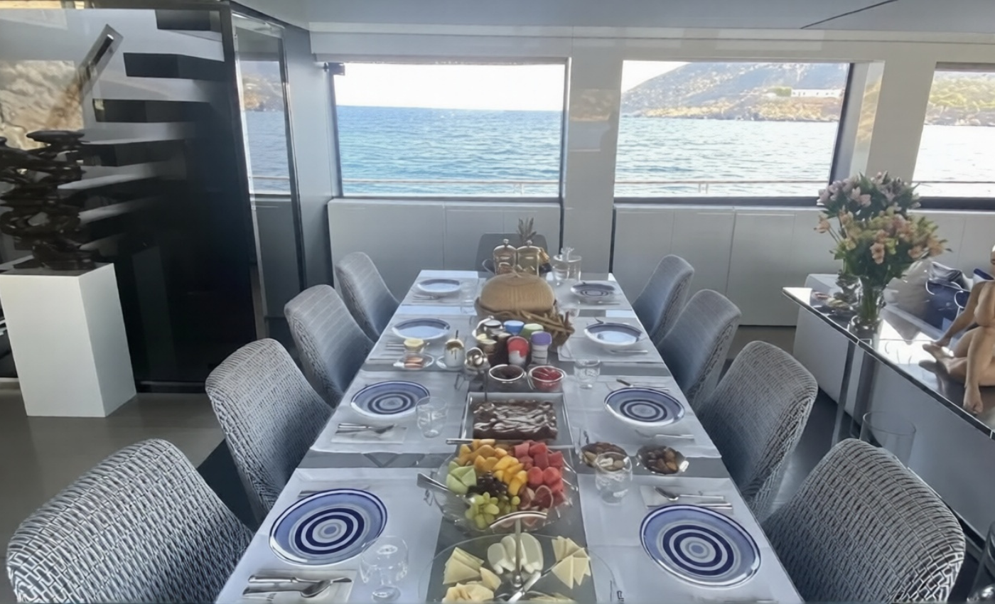 Accommodating up to 10 guests in five elegant cabins and supported by an outstanding crew of eight, RIANA II offers expansive social spaces, private balconies and a seamless indoor–outdoor flow throughout.