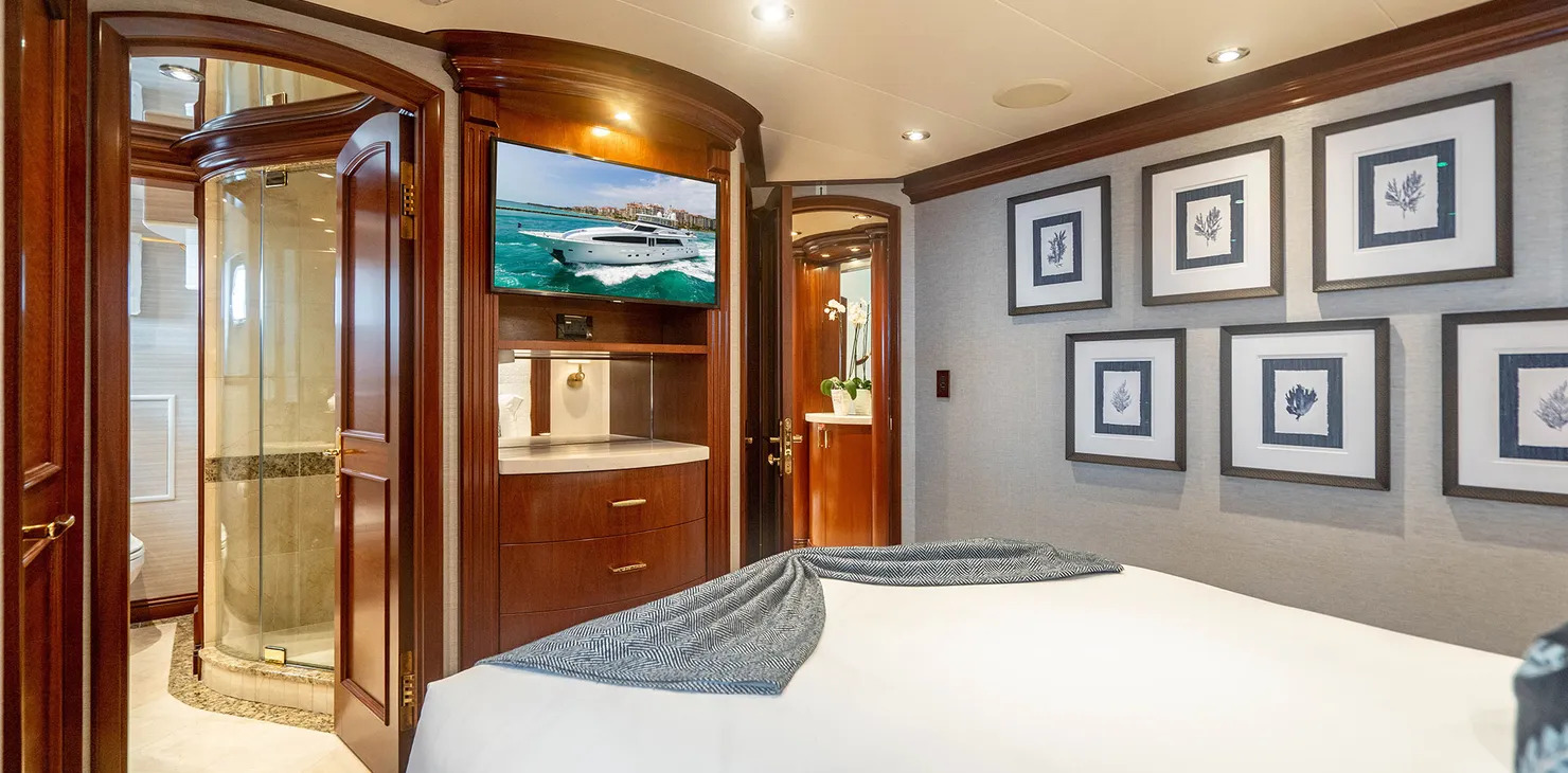 She was designed by naval architect Jack Sarin and decorated by interior designer Robin Rose. She offers a magnificent vacation experience for up to 9 guests who can be accommodated in four spacious cabins, all with ensuite bathrooms, safes and full entertainment facilities.