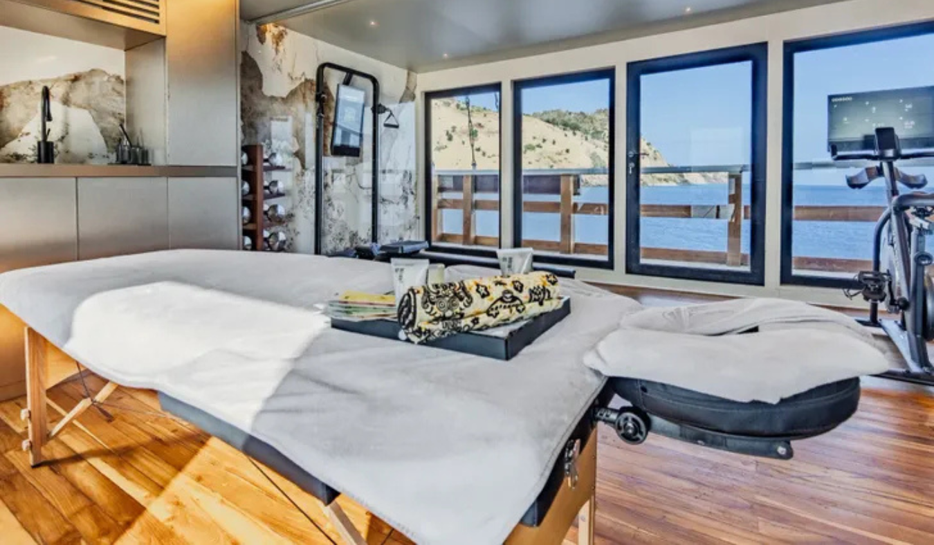 Welcoming up to eight guests in four serene cabins and attended by an exceptional crew of 10, KAYRA offers a rare blend of adventure, privacy and onboard wellness, complete with gym, sauna, spa room and a deck jacuzzi.