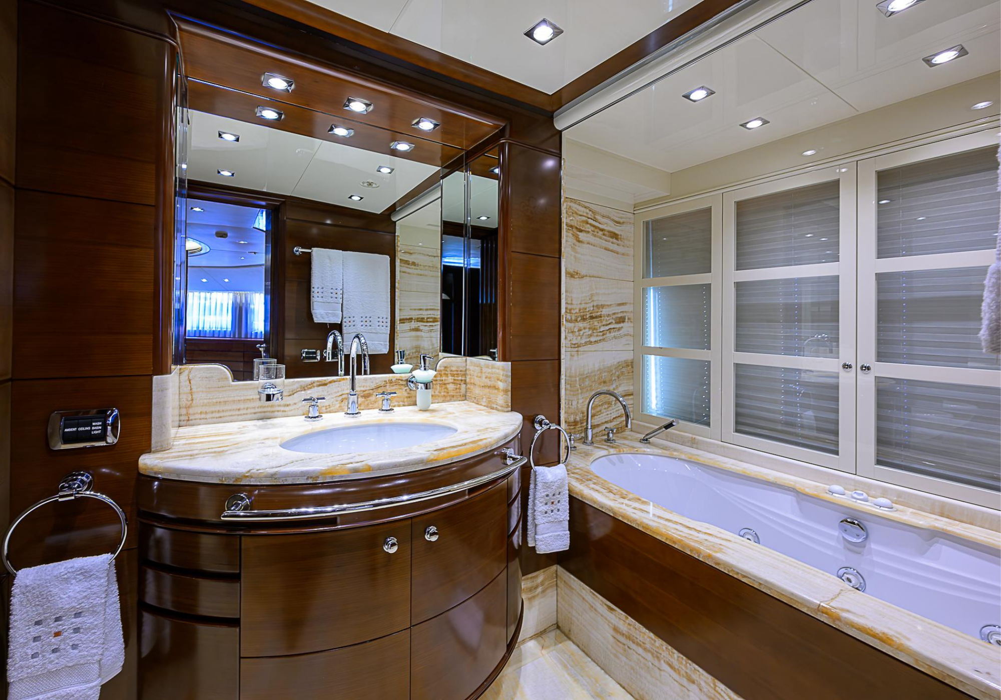 Forward of the dining room, is a second saloon with two L-shaped sofas, coffee tables and a small bar. The forward section of the upper deck is devoted to navigation with a very well designed bridge that offers excellent all ...
