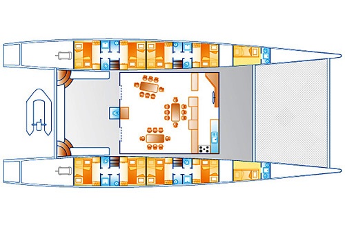 Every detail on board has been conceived for an ideal cruise for 16 guests in 8 double cabins with showers and separate toilet. The crew of 3 are accommodated in seperate quarters. The yacht displays a 50 sq m saloon, as well as a huge cockpit shown in the photos below.