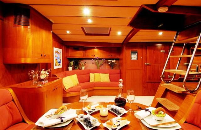 Her bright and lively decor is comfortable and energetic and her deck hatches allow plenty of light into the salon.