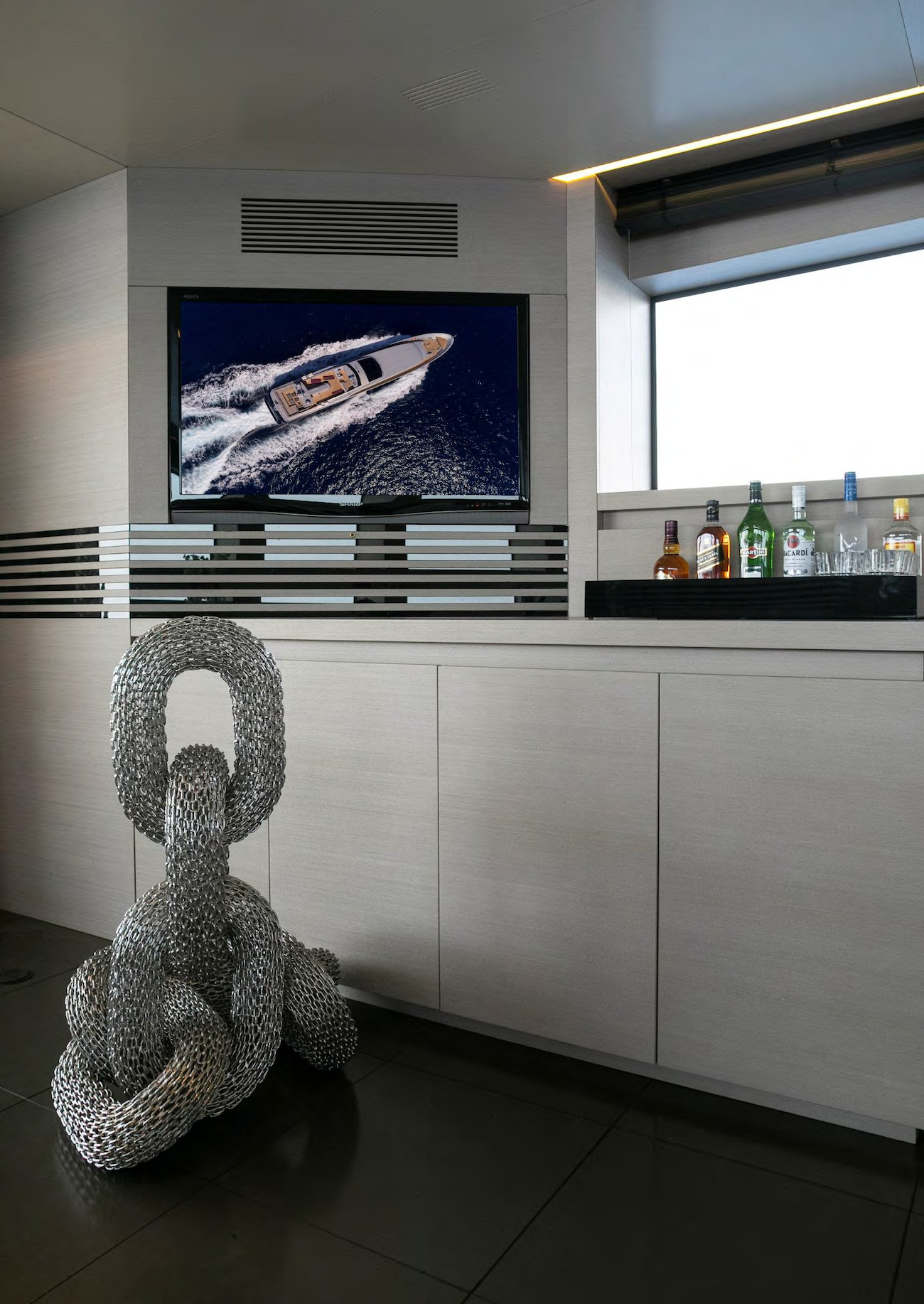 Luca Dini designed the spectacular interior which is breath-taking with grey being the predominant colour onboard.