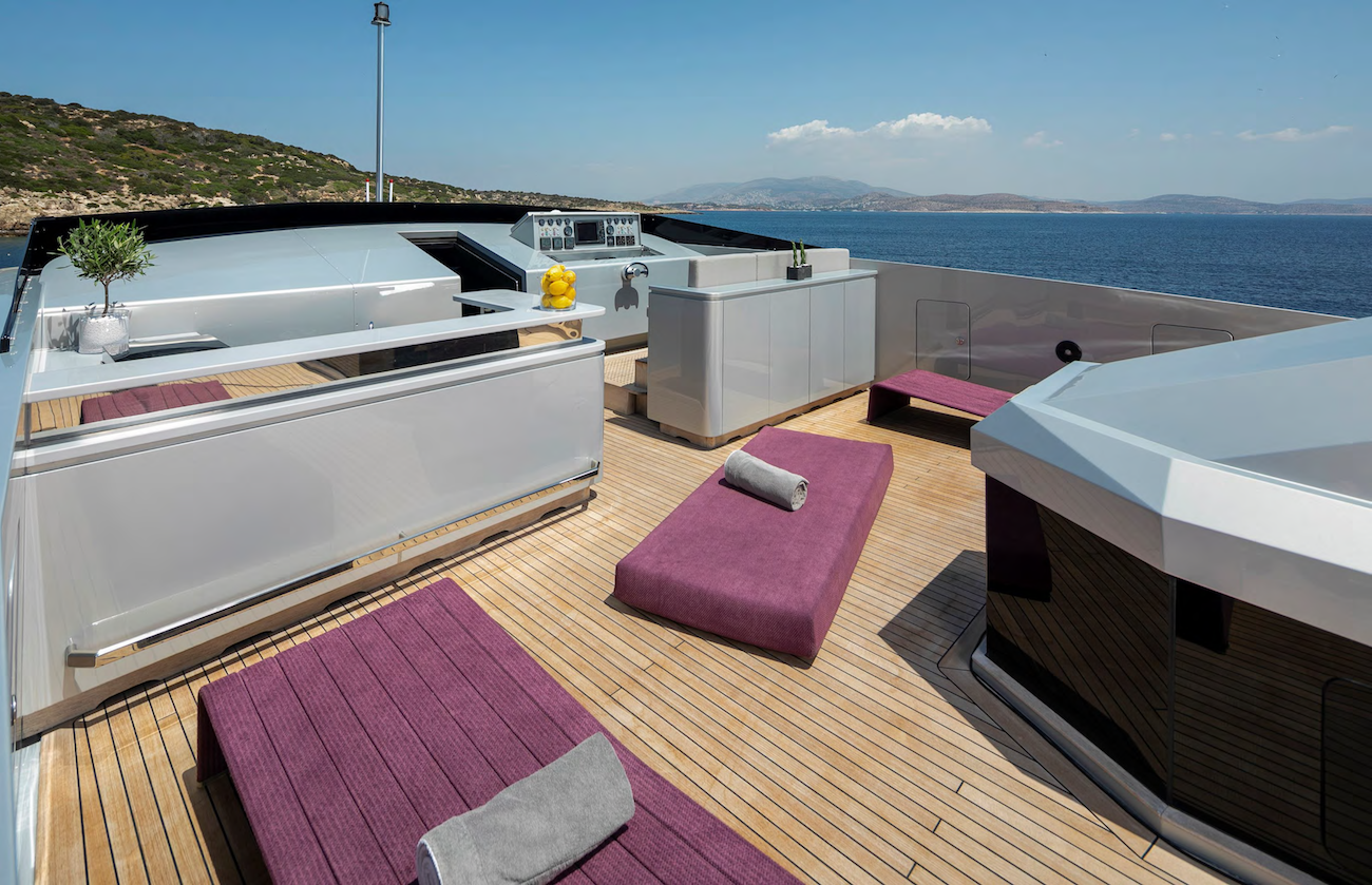 Her main features are the timeless design, sleek lines, spacious sundeck and comfort.