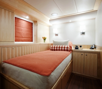 The sailing yacht’s four guest cabins are configured to sleep 9 guests in high comfort, while the yachts flexible arrangement can provide accommodation for two further guests on Pullman berths.