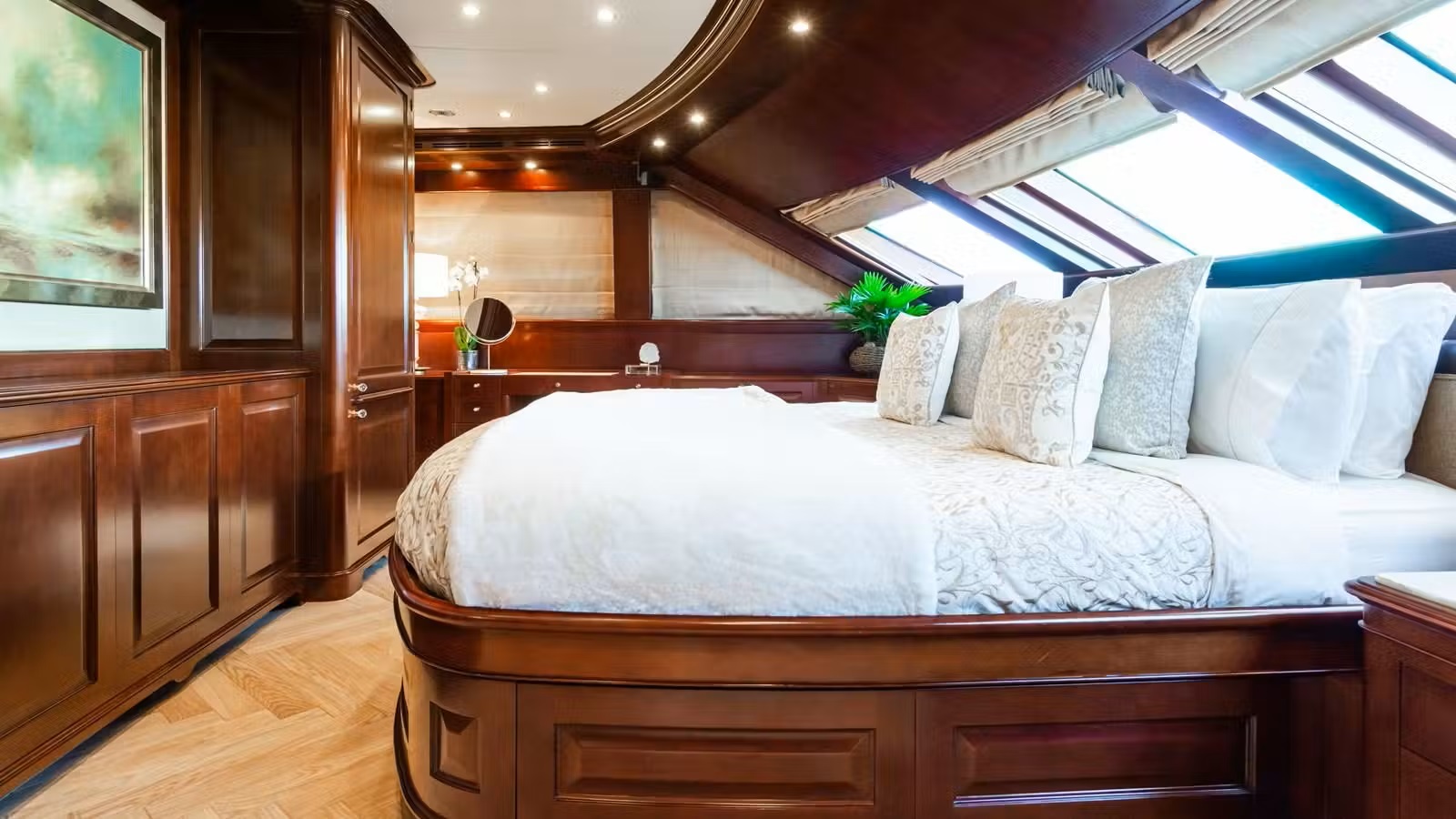 With accommodation for up to 10/12 guests and fully MCA Commercial her Master Suite is located on the main deck with the remaining cabins, 2 VIP and 2 Twin Guest Cabins below deck, all exquisitely designed with soft furnishings and marble bathrooms.