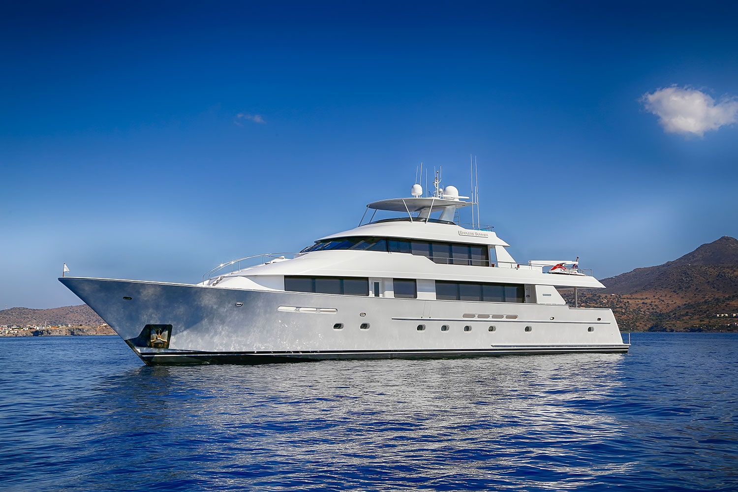 This luxury motor yacht provides excellent luxury and accommodates up to 10 guests in 5 staterooms.
