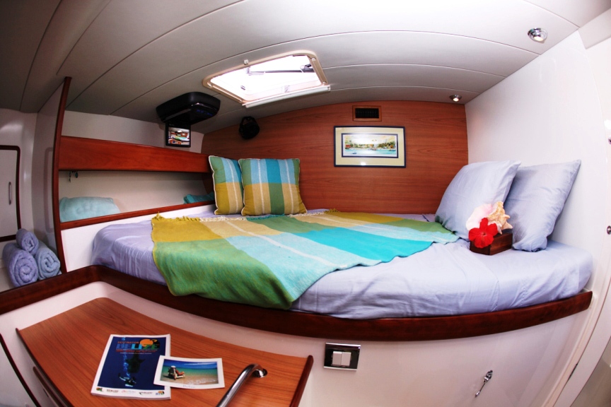 Purrfect One is available for a range of itineraries and can accommodate up to 6 guests in 3 spacious well equipped cabins. She is equipped with a range of small luxuries and excellent facilities including dive equipment.