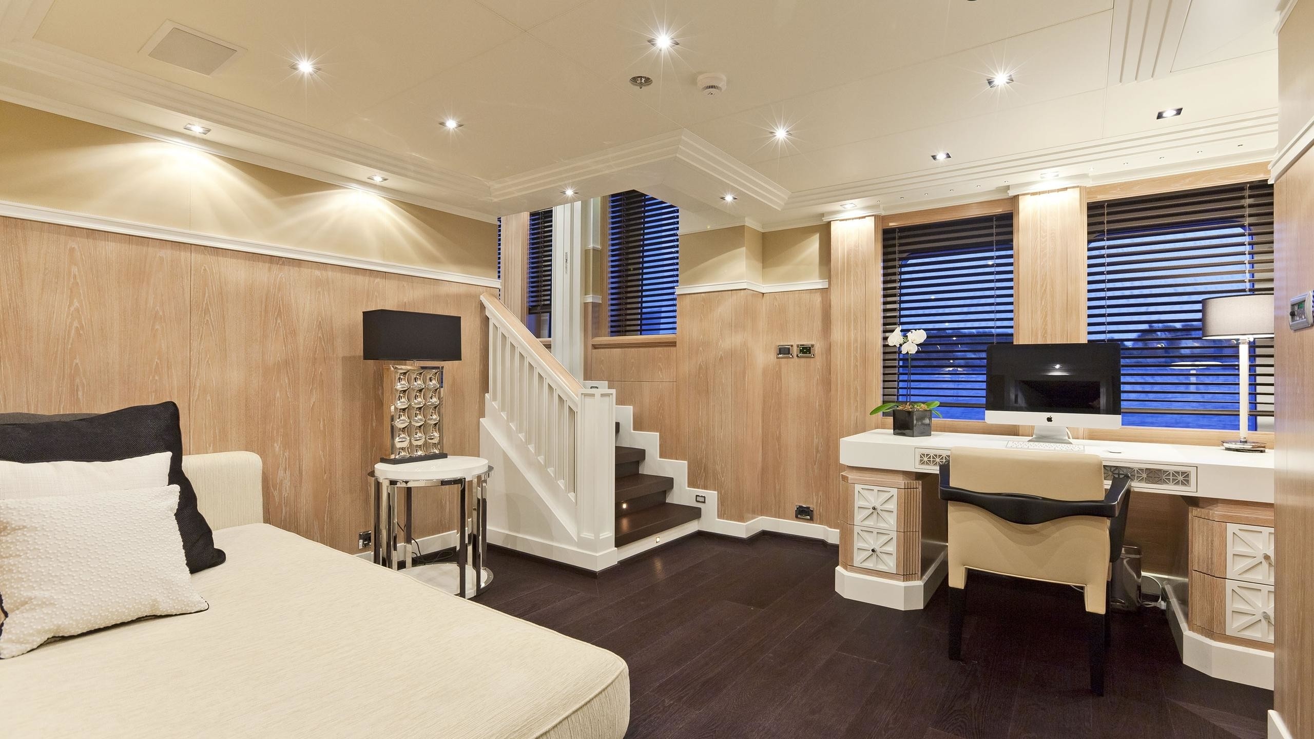 Moving up to the bridge deck, guest will find the formal dining room and a second elegant lounge salon. The bridge deck is equipped with a circular sliding door system which can provide guests with the opportunity for alfresco feeling dining in a protected area.