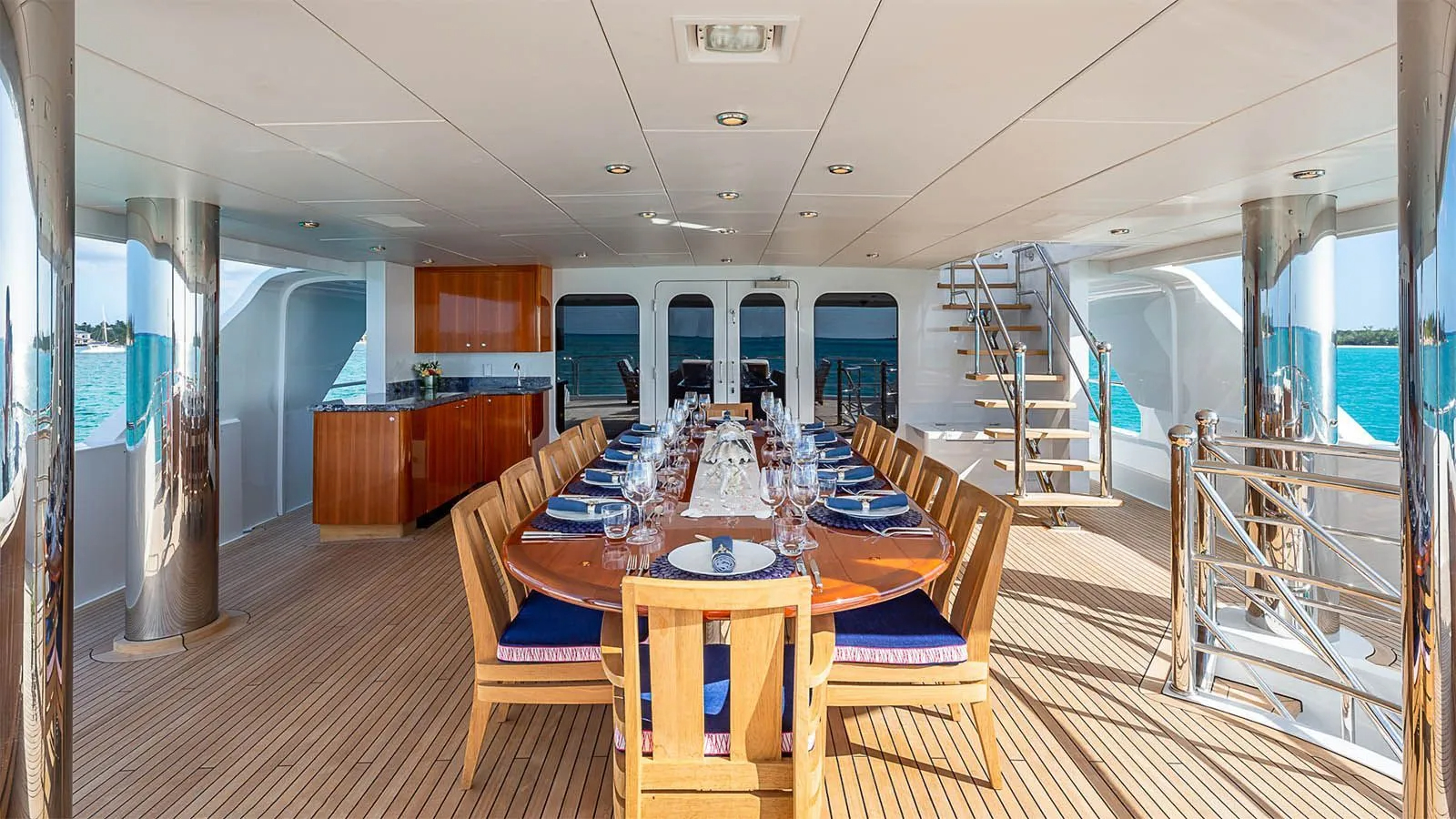 NOTABLE FEATURES of CARTE BLANCHE 161': ~ Panoramic views in the salon ~ Opulent interior styling ~ Alfresco & formal dining areas ~ Jacuzzi ~ Wet bar ~ Outdoor seating area ~ Swim platform ~ Water toys
