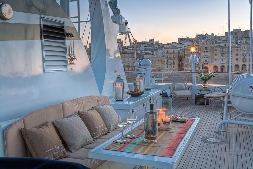 Sunset Dusk: Yacht SANSSOUCI STAR's Deck Sitting Image