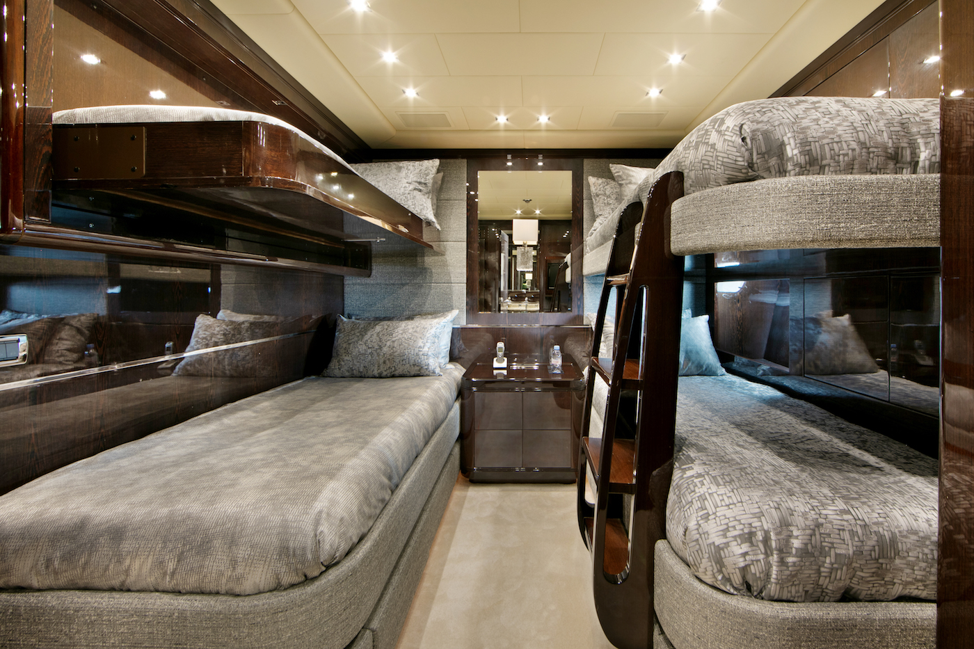 A fridge and a tv plasma in each cabin, Kaleidescape ( 3000 films and 5000 music ) and there are also a Hammam in master and VIP cabins.