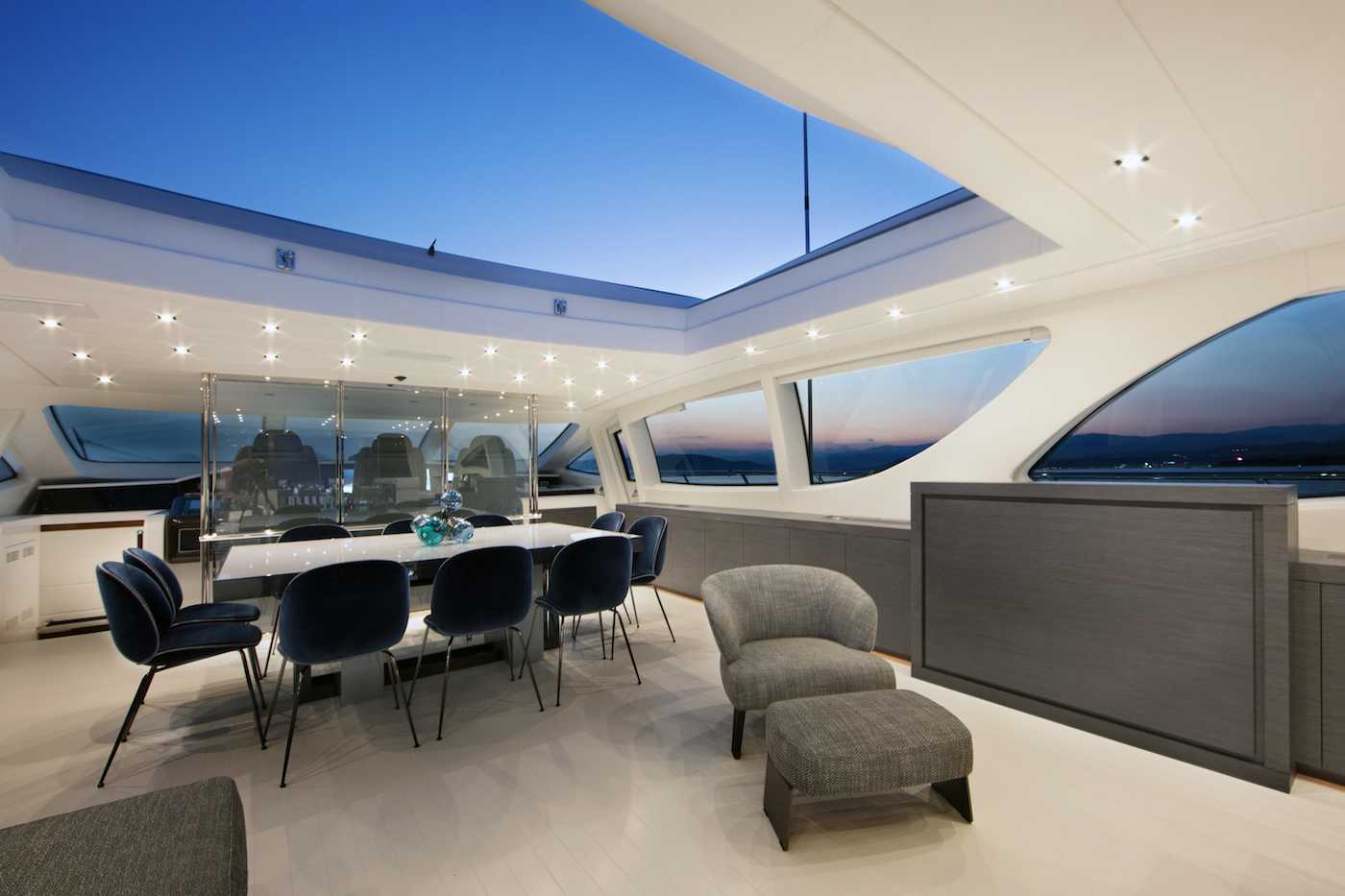 The charter yacht also has a ‘nightclub’ organization on board for up to 100 guests for on deck gatherings.