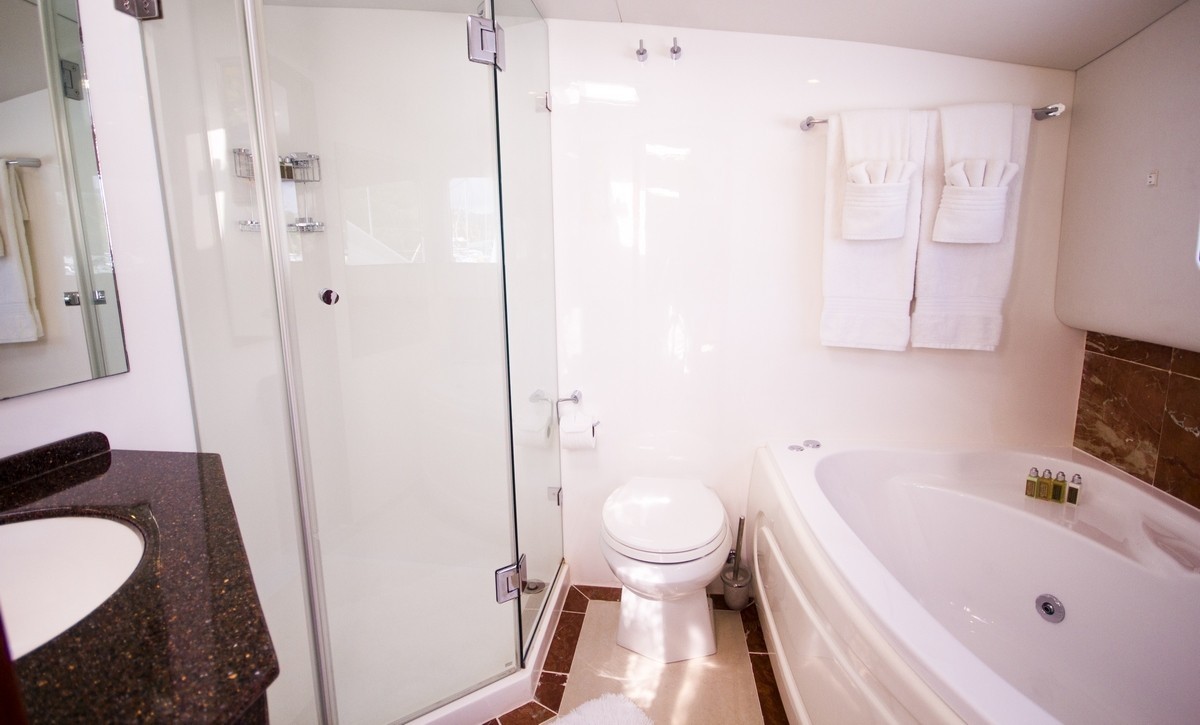 hat can be converted to two twin sized beds, Seamless Showers, Flat Screen TV, DVD Tenders & Toys: