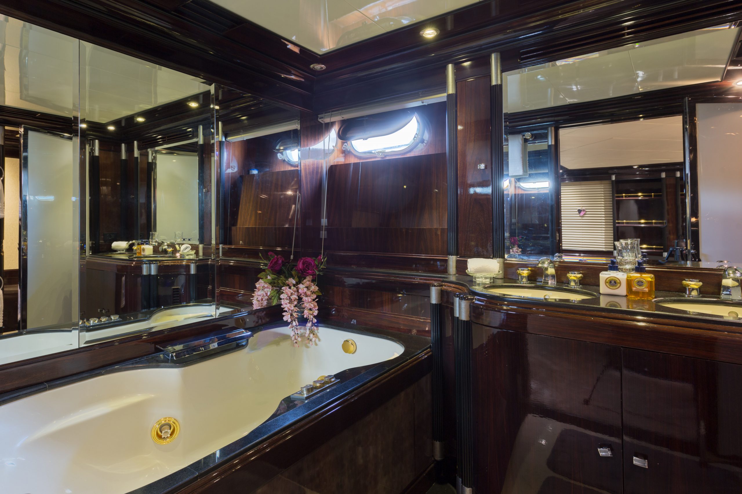On the lower deck, there is a VIP cabin almost identical in size as the master cabin with a queen sized bed and ensuite bathroom with shower. There are two double guest cabins with queen size beds and ensuite bathroom with shower and one twin cabin with two single beds and ensuite bathroom with shower.