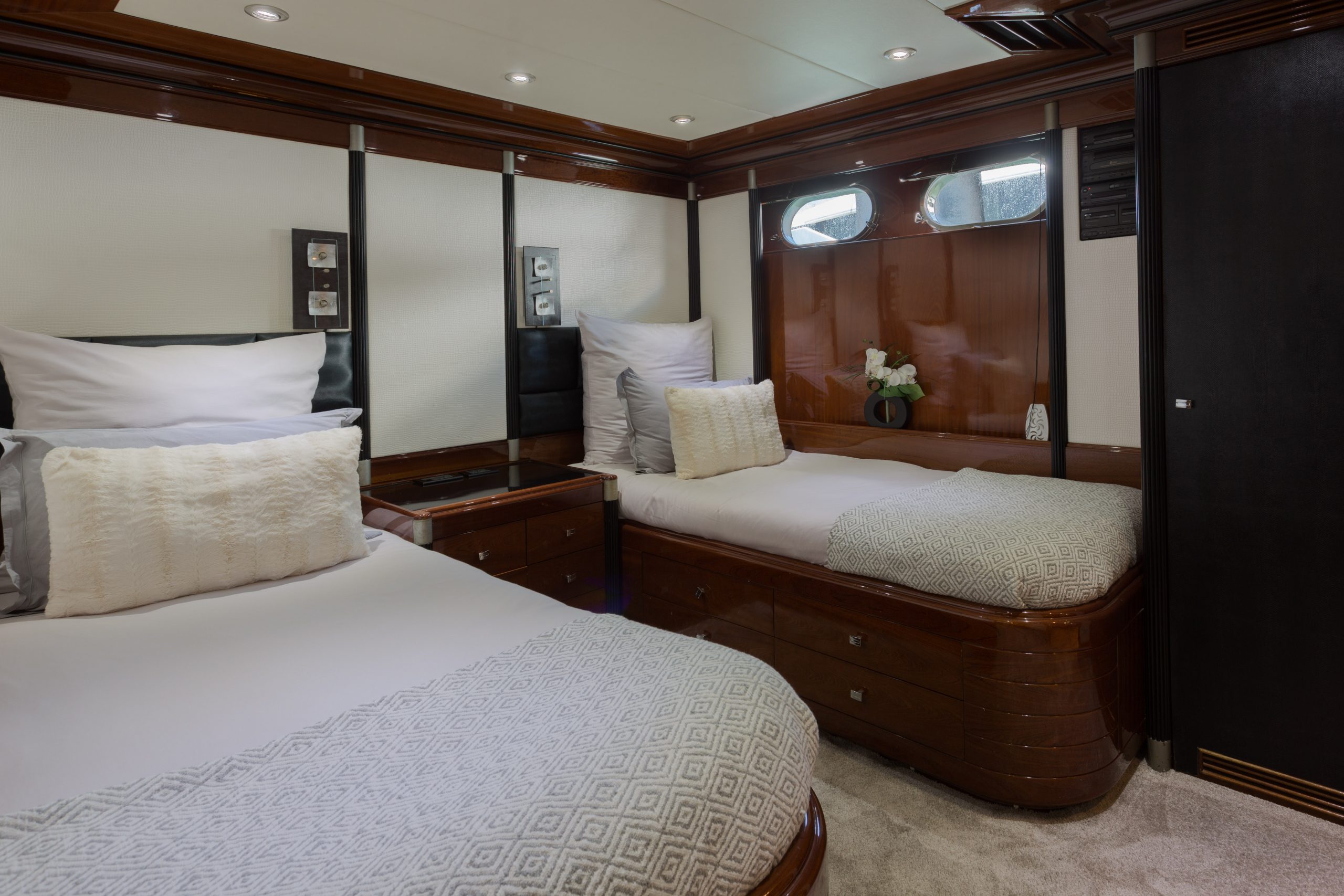 On the lower deck, there is a VIP cabin almost identical in size as the master cabin with a queen sized bed and ensuite bathroom with shower. There are two double guest cabins with queen size beds and ensuite bathroom with shower and one twin cabin with two single beds and ensuite bathroom with shower.