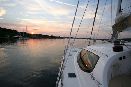 Catamaran Sagaponack is a 17.82m (58' 5") Privledge 585 sailing yacht that was built in 2005. She is an elegant catamaran well equipped for chartering. S/Y Sagaponack has a layout different to other Privilege 585s, with 2 queen cabins forward and 2 twin cabins aft that each includes a day bed.