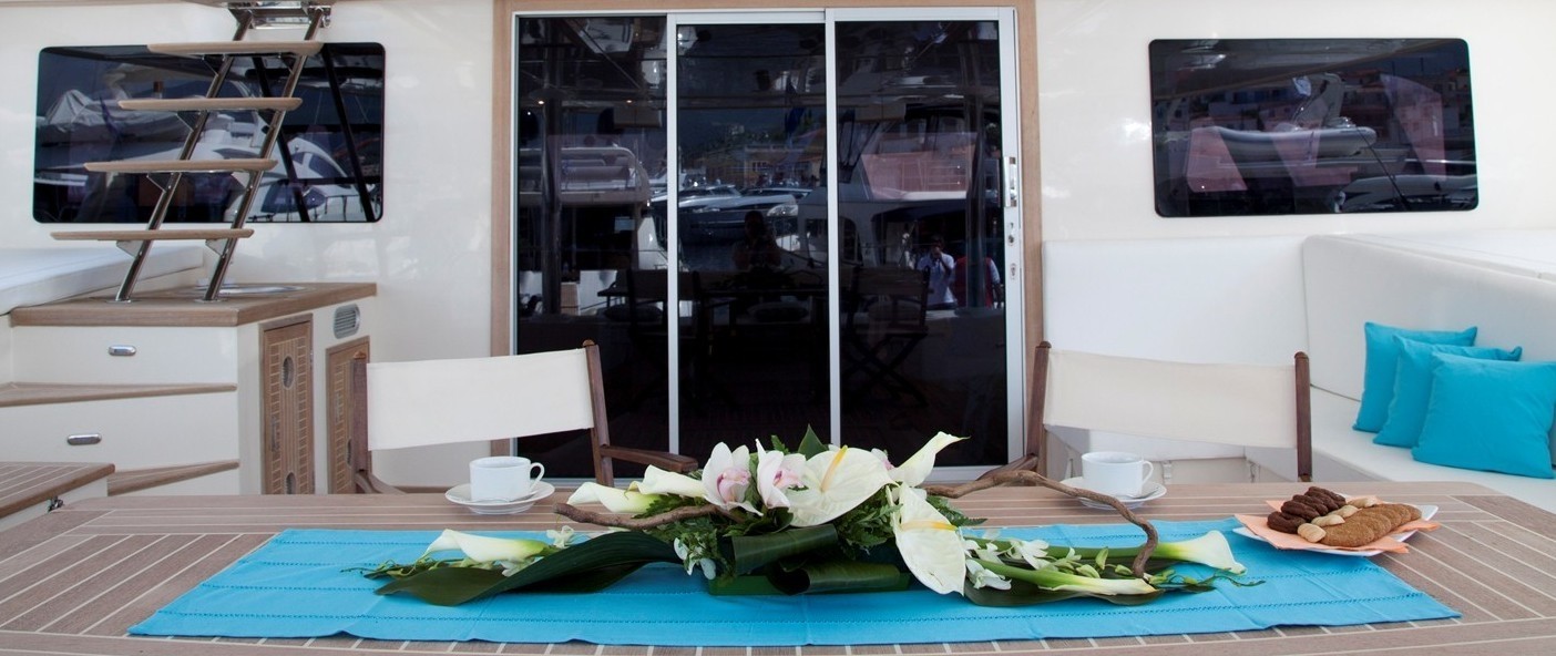 The fly-bridge also offers dining for up to 8 people making it the perfect place to enjoy a wonderful gourmet meal while taking in the magnificent views.
