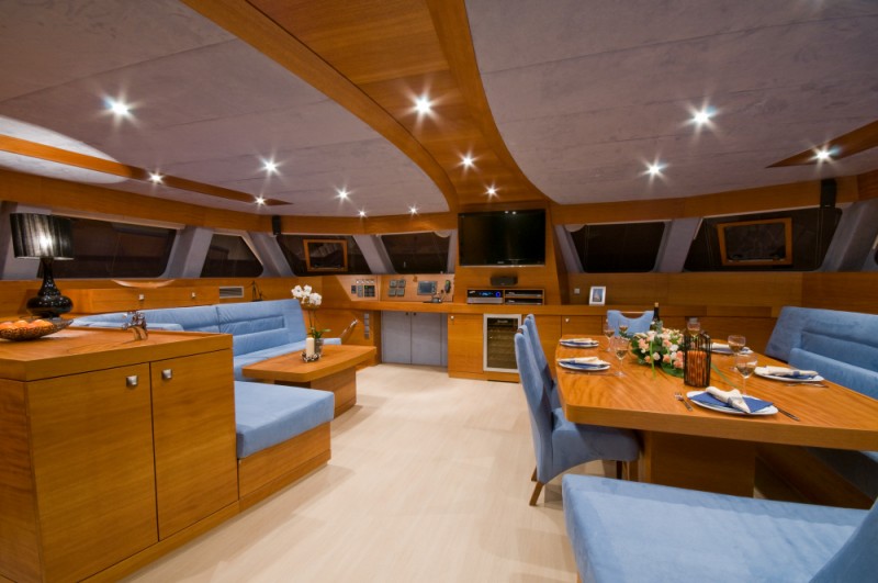 The galley is down opening up the whole salon for guest’s enjoyment.