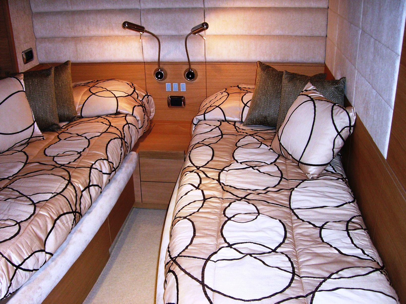 This performance motor yacht offers 4 cabins for up to 8 guests overnight, with a crew of 2 members in separate accommodation, and she is based in the North Adriatic, Italy and Croatia for Mediterranean yacht charter vacations.