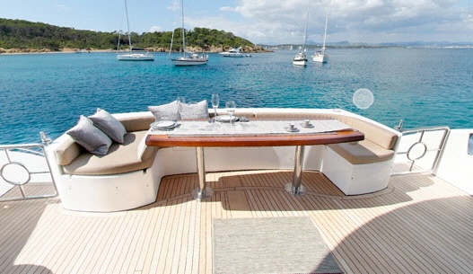 Back on deck, luxury yacht FAMILIA offers excellent outdoor space including a alfresco dining area on the aft deck and on the flybridge. This level of choice is quite rare for a yacht of this size and this is one of the features that make FAMILIA special.