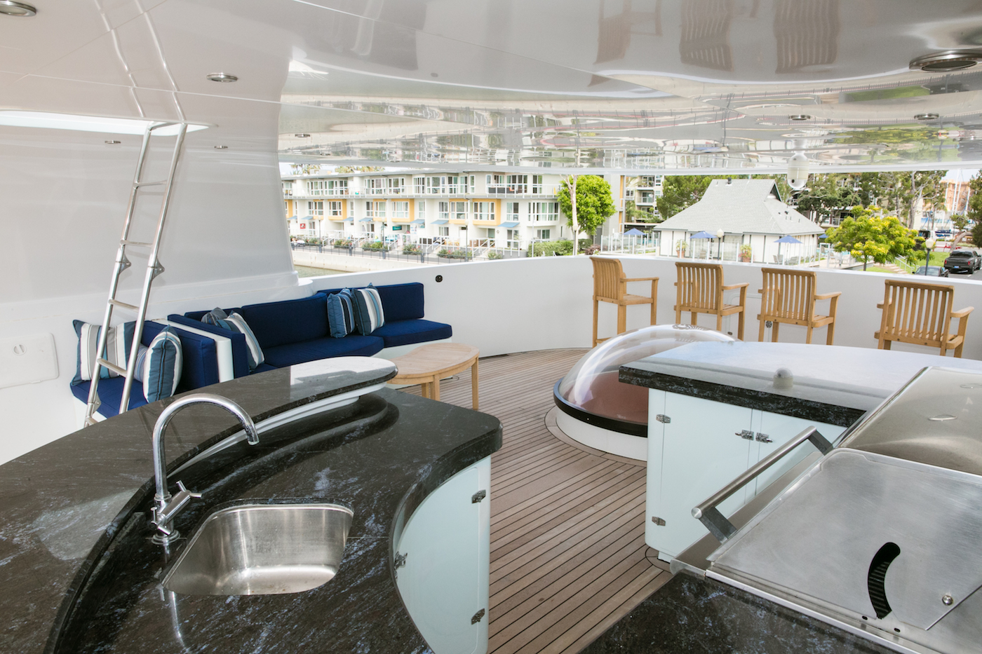 The sky lounge sundeck also gives ample lounging areas with a wrap around leather couch seating for 10, dining for up to 14 and a full bar and a 15 person extra large Spa Pool.