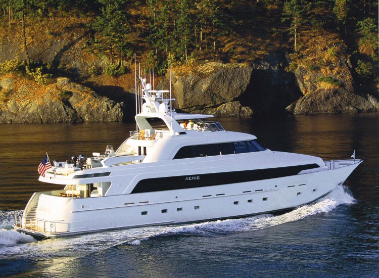 Luxury yacht AERIE is a 37,80m (124’) charter motor yacht which was built by Delta Marine in 2001 and was refitted in 2009. M/Y AERIE is available for luxury yacht charter vacations in the Bahamas and the Caribbean.