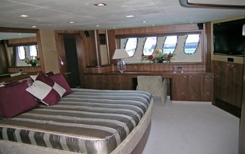The Sunseeker 90 CATALANA also provides comfortable accommodation consisting of four cabins offering ensuite and entertainment facilities.