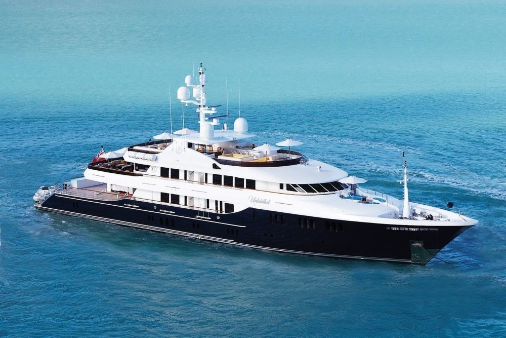 Motor yacht UNBRIDLED is a 58.20m (190' 11") superyacht that was built by Trinity Yachts in 2009. She was designed by Geoff Van Allen and boasts a strikingly impressive dark blue aluminium hull and white superstructure.