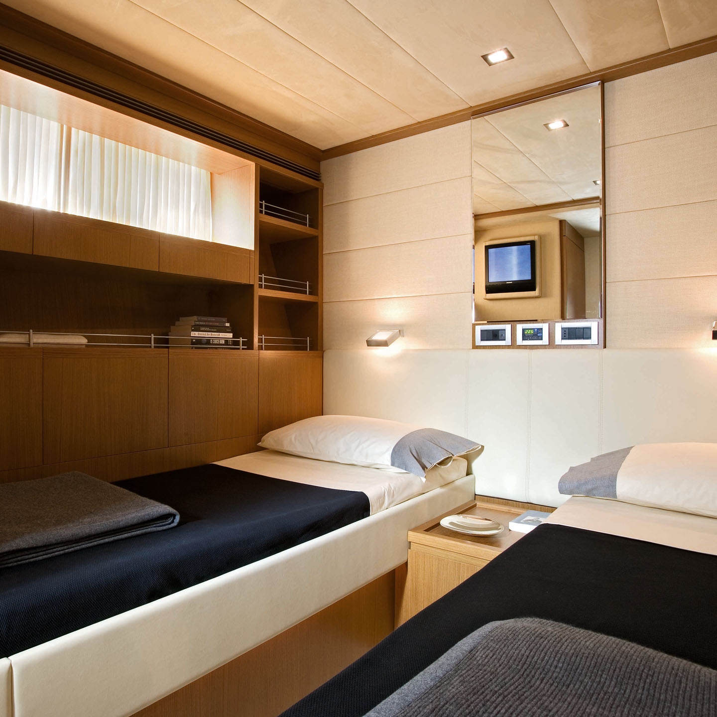Motor yacht LAVITALEBELA can accommodate up to 8 charter guests sleeping in 2 double and 2 twin cabins and cruise with as many as 12 onboard.