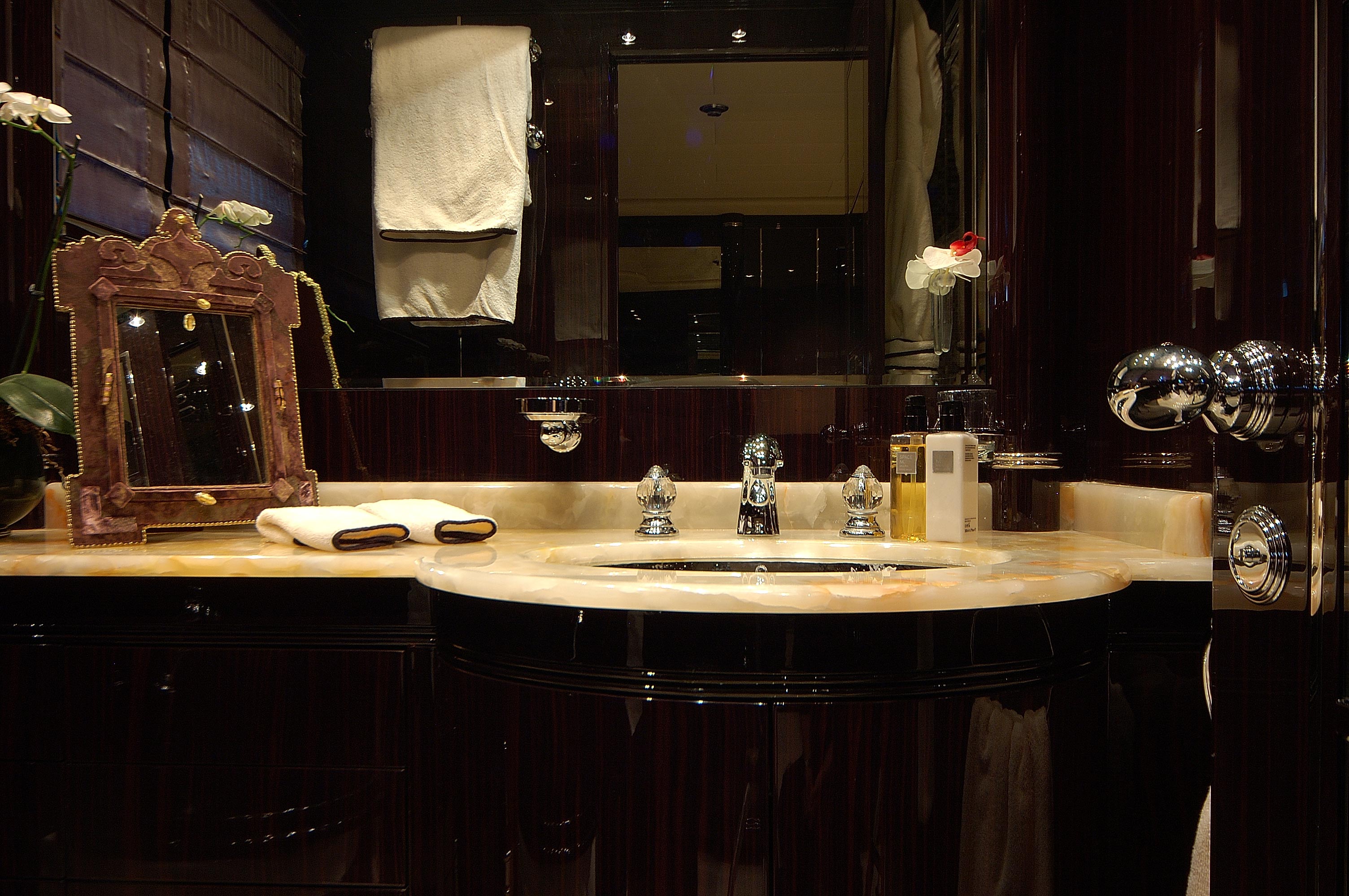 Master stateroom with king sized double bed (2m x 2m), with ensuite facilities including double sink unit and hammam (steam room). Walk-in dressing room, small room for baby.
