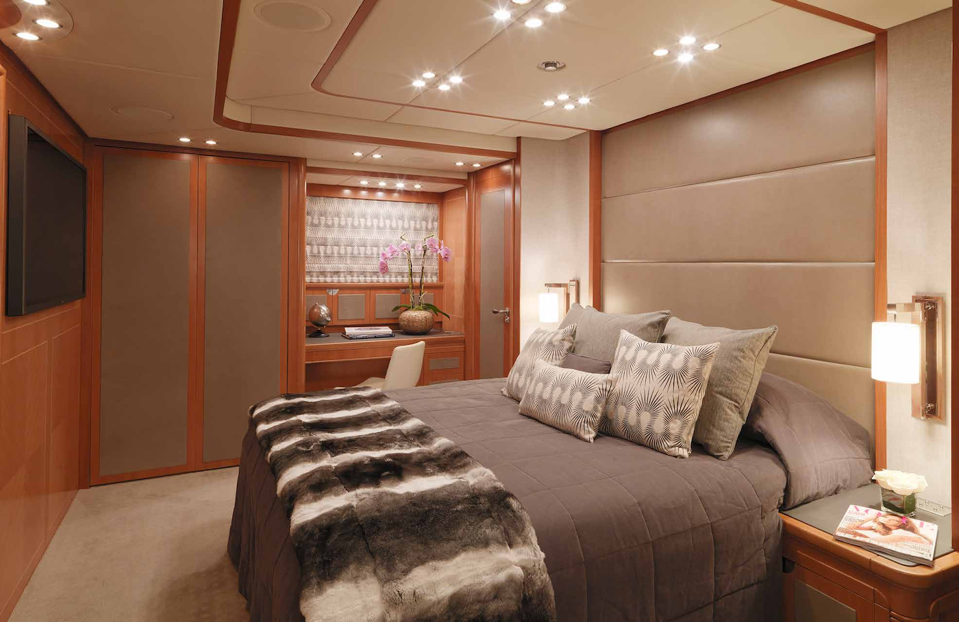 Her master cabin is luscious and generous stretching the full beam of the yacht.