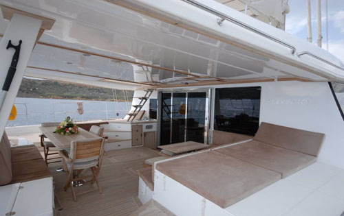 Catamaran MOONSTONE offers amble sufficiency of space for entertaining and relaxing with a large internal salon, dining and galley area.
