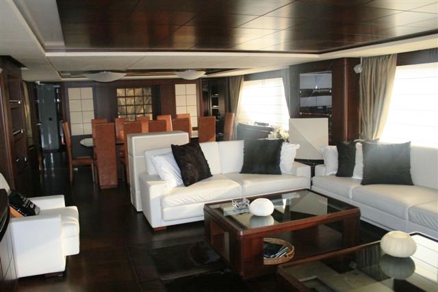 Her saloon is also spacious with a large space for dining, a large Panasonic TV and access to the lower deck. The superyacht’s wheelhouse has a small settee and table so that guests are free to sit with the captain while ...
