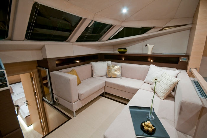 Her navigation charter area features an additional coffee lounge space and the navigation station itself.