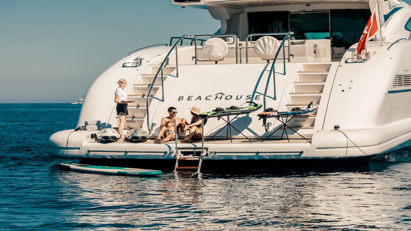 Motor Yacht BEACHOUSE (ex MAO) (duplicate listing, update together with ID 9998) provides yacht charters in The Mediterranean, South Of France, Open Style Sport Yachts, Luxury Yachts At Events, Europe, Spain, Balearic Islands, Western Mediterranean, St Tropez, and Sicily.