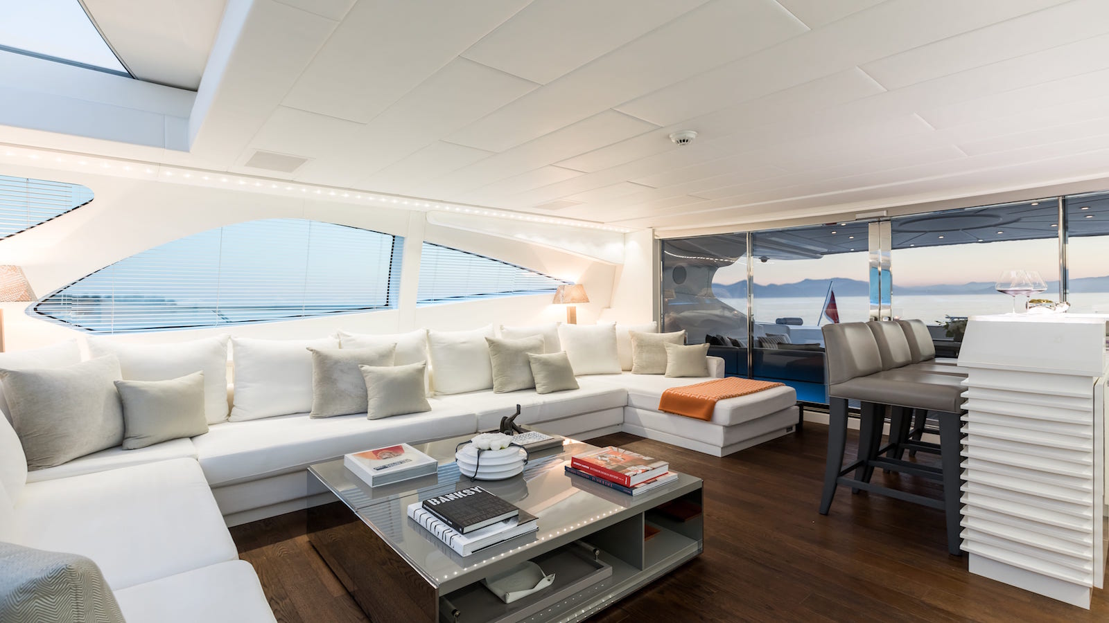 NOTABLE FEATURES: ~ Top speed of 41 knots ~ Vast salon with dining area ~ Alfresco dining space ~ Stylish interior ~ Stabilisers ~ Wi-fi