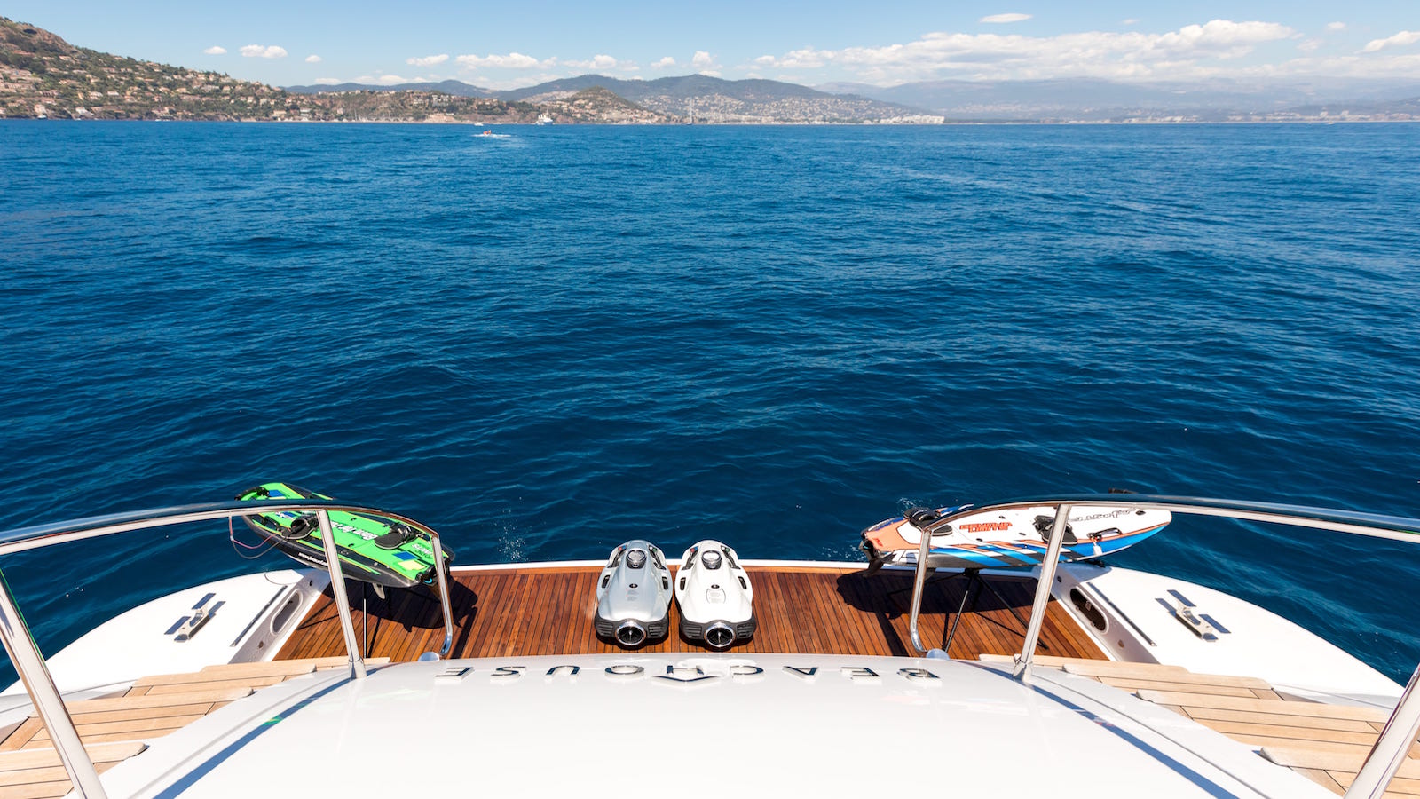 NOTABLE FEATURES: ~ Top speed of 41 knots ~ Vast salon with dining area ~ Alfresco dining space ~ Stylish interior ~ Stabilisers ~ Wi-fi