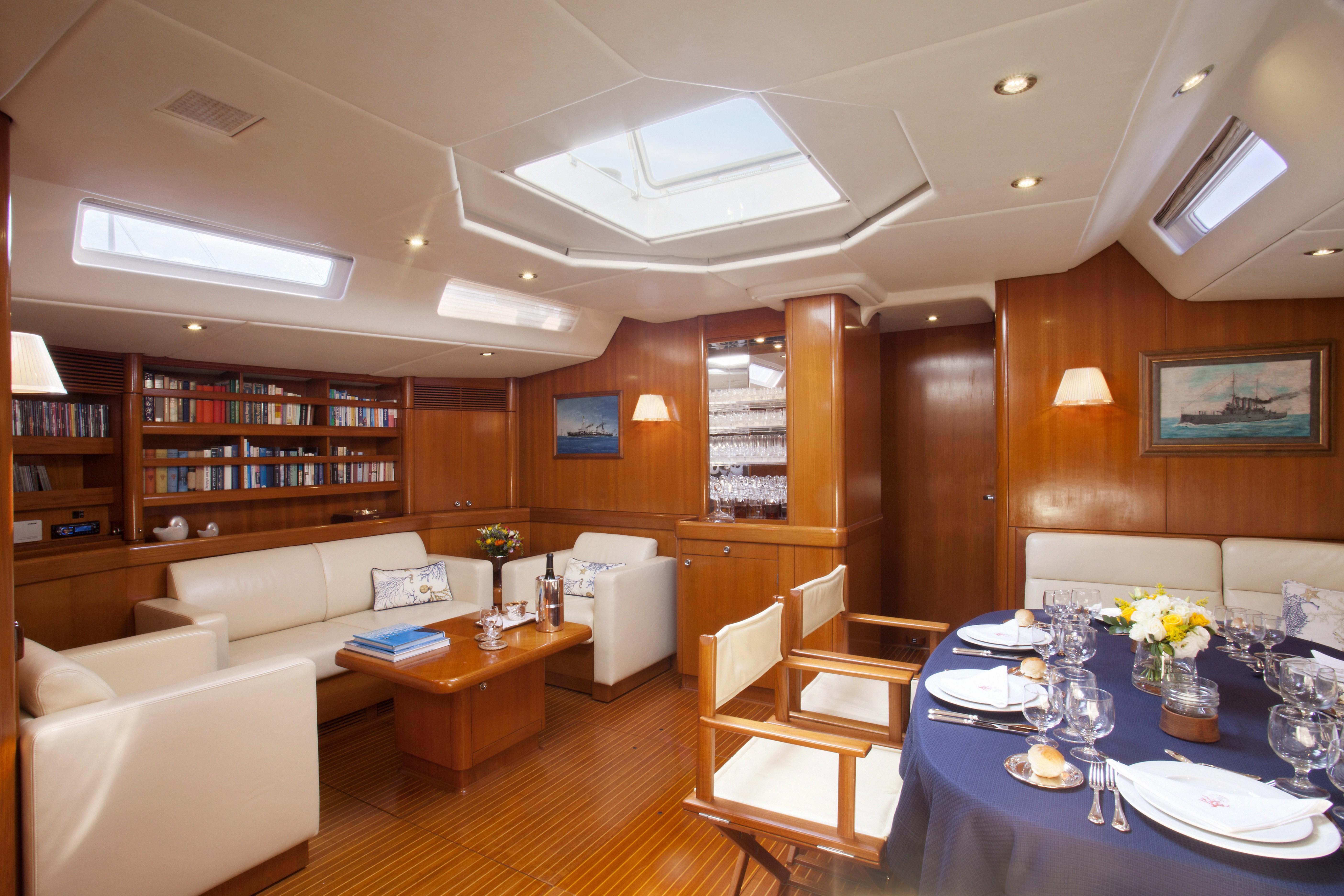 Callisto accommodates six passengers in three cabins – one large master cabin and two double cabins, all of which have en suite bathrooms. The master stateroom features a queen-sized bed, lounge area and desk. The double guest cabins have a double and single bed.