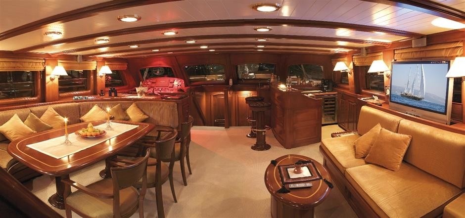 Turkey based sailing yacht Shanti can accommodate 8 guests in four luxurious and well appointed staterooms including two master and two additional twin staterooms each with twin single beds. All cabins have air-conditioning, a private Shower / WC (Toilet systems are electrical vacuum) and an LCD TV with satellite and a DVD system.