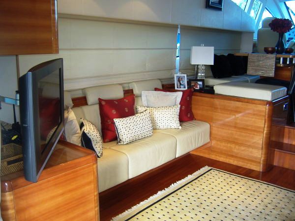 It features a starboard walk in closet, built in entertainment centre and a port side vanity and desk . The yacht has signature large round 24 inch side ports may be opened for a spectacular view. The yachts VIP Stateroom is ...