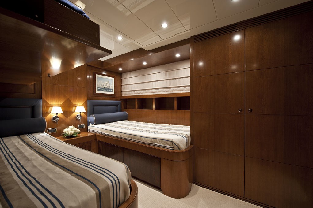Accommodation is offered in 4 cabins for a total of 10 guests. The cabin configuration comprises of two double and two twin cabins.