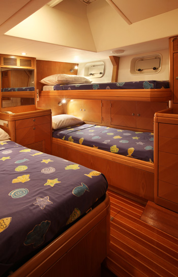 Keama II can accommodate up to 6 guests a Master cabin with a King berth, ensuite head and shower. A VIP Cabin with a Queen berth, ensuite head and shower and a Guest Cabin that has 3 fixed single berths, ensuite head and shower.
