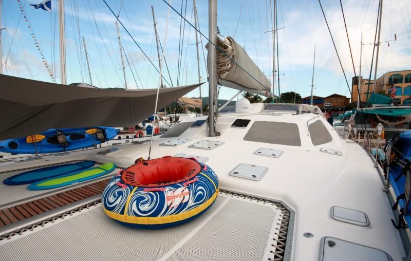 Of course she also has a huge foredeck with trampolines for sunbathing, stargazing and enjoying the thrill of sailing this performance catamaran.