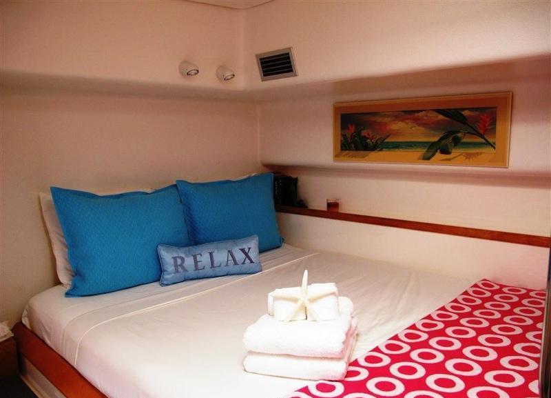 Luxury Catamaran, Fantasy Island’s clever design gives her more usable space that other yachts of her size allowing her to accommodate 10 guests in comfortable air-conditioned cabins with their own bathrooms.