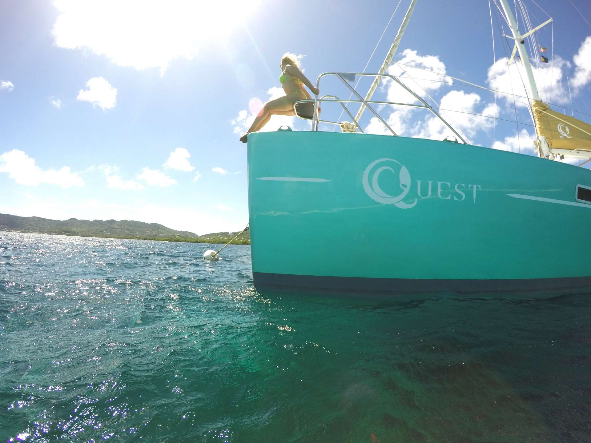 Crewed Catamaran Quest provides yacht charters in The Caribbean, Windward Islands, Grenadines, and Grenada.